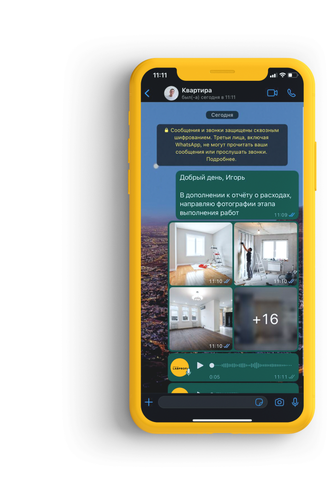 Мы ежедневно информируем о ходе выполнения работ, записываем видео и делаем фото, можем поставить видео камеру. Как итог — вы всегда в курсе что происходит на объекте.
